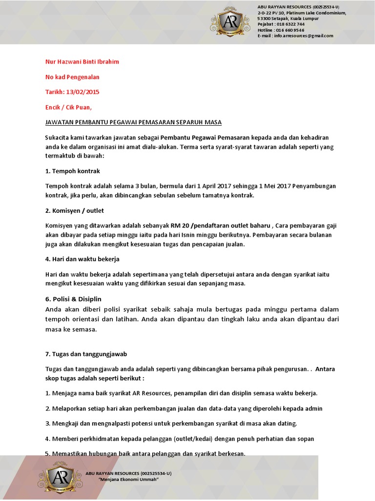 24 Surat Tawaran Kerja Kontrak Part Time Pdf